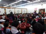 修学旅行2日目、6:10の起床時間までぐっすりと眠っていて、電気をつけられて起きる子が多かったです。眠そうにしながら洗顔、歯みがき、寝具を整え、7:30朝食へ、ハムエッグや焼きのりなど夕食よりは軽めの食事、おかわりする子は・・・いっぱいいました。お世話になったホテルの方々へお礼のあいさつをしてバスに乗り込みます。朝食の頃から、猿たちがたくさんホテルの周りに集まって来ていました。