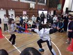 昨日全校朝会でお話をしたとおり、5時間目に体育館でフェンシング競技普及・振興事業「フェンシング協会学校訪問プロジェクト」が開催されました。東京オリンピックの県内開催競技であるフェンシングの魅力を感じてもらい、日常的にスポーツに取り組む子どもを増やすための県の事業であり、また、日本フェンシング協会が、フェンシングの魅力や素晴らしさを体感できるような競技紹介や体験会を実施する、その際、オリンピアン・日本代表等の選手が講師役になり、自らの経験を語ってもらうことで、児童が目標を持って挑戦することや困難を乗り越えることの大切さについて理解を深めるために行っているプロジェクトです。