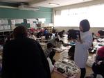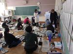 特別非常勤講師の柳田先生が各クラスをまわり、子どもたち一人一人にアドバイスや称賛をおくりました。担任の先生がその様子をタブレットで撮り、他のクラスの画面に投影し、先生の書写指導を共有していました。みんな落ち着いて、いい字を書いていました。作品は、1月の授業参観に合わせて校内掲示されます。