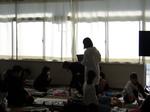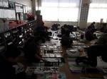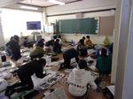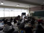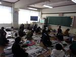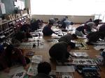 今日の2・3時間目に6年生の各教室で書き初め大会が開催されました。体育館が2月末までエアコン工事でつかえないので、教室が会場です。