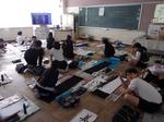 きょうの2・3時間目に5年生が各教室で書き初め大会を行いました。