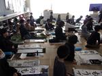 今日の2・3時間目に4年生が各教室で書き初め大会を行っています。特別非常勤講師の柳田先生の指導です。