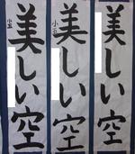 昨日から松戸市小中学校書初展に出品していた本校の代表作品を職員室前廊下で展示しています。どの作品も代表児童練習で何回も練習した力作です。