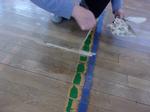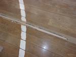 今日の放課後は、体育館の床の補修作業を全職員で行いました。昨年も行いましたが、随分と古く、床板に穴が開いていたり、割れていたりしています。専用のパテを使って凹みを埋めました。エアコン工事中の合間をぬって作業を進めています。