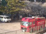 同時間帯に学童が消防署の方をお迎えして、消防訓練を校庭で行っていました。