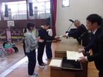 今日の1時間目に6年生の卒業式練習前に体育館ステージで表彰式を行いました。