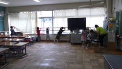 机を廊下に出して、ワックスをかけたり、扇風機を分解してきれいに拭いたりして、特別教室も高学年が受け持ってくれてきれいにしました。廊下、階段、トイレ、昇降口もごみをとって、磨いていました。1年生も掃除が上手になりました。体育館は、トイレが車いすでも入れるように改修されています。学校で1番きれいなトイレになりました。