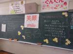 黒板には担任の先生からのメッセージがありました。カラフルなチョーク画もこれで最後です。