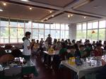 中禅寺湖畔のレストハウスに到着し、お昼ご飯のカレーライスを食べました。ここは軽めに済ませてすぐ次に行きます。みんな食べるのが早いです。市内の学校とも一緒になりました。バスに乗ると空が晴れてきました。戦場ヶ原ハイキングに出発です。