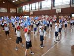 体育館だと指示も通りやすく、振り付けの確認をすることができます。