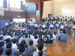 25日の演奏会で演奏する曲を全校児童の前で披露しました。