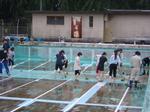 今日の放課後にプール清掃を行いました。プールサイドやフェンス、プールの中を主に行いました。プールの中の落ち葉や石ころ、ヘドロを取り出すのが大変でした。そして、プールサイドやフェンスに生い茂った植物を取り去りました。物掛けのS字フック(小)も取り付けました。