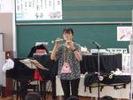 最初に吹き方を教わり、「メリーさんの羊」を各クラスごとに演奏しました。その後、講師の先生にいろいろなリコーダーを見せてもらって、それぞれのリコーダーで曲を吹いてもらいました。
