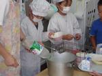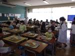 フルーツパンチは、各学級にサイダーが1本づつ届いていて、フルーツの入った食缶に入れて完成させます。だから炭酸でシュワシュワしています。カレーライスもたくさん食べて、暑さに負けずにがんばりましょう。