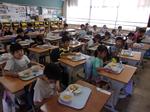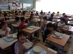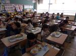 今日から給食が始まりました。カレーライスとフルーツパンチです。「やったー」という声が聞こえてきました。夏休みのお昼ごはん作りから解放されて、ご家庭からも「やったー」と聞こえてきそうです。周知のとおり、2・3学期も松戸市では、給食無償になりました。何重にも「やったー」ですね。