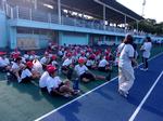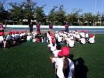今日の放課後、松戸運動公園陸上競技場で市内体育大会に向けての合同練習会が開かれました。今日は6校の子どもたちが200人以上集まりました。寒風台小学校は、今日の幹事校なので進行や準備、後片付けを先生方が行いました。