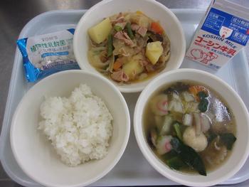 【献立】 ごはん にくじゃが とうふのだんごじる ヨーグルトレーズン ぎゅうにゅう