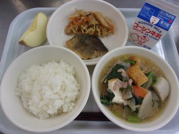 【献立】 ごはん ほっけのしおやき きりぼしだいこんのにもの ぐだくさんじる りんご ぎゅうにゅう