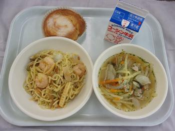 【献立】 スパゲティナポリタン チョコスコーン 「スパゲティナポリタン」 今日のナポリタンには、あさりが入っています。あさりには、血液のもとになる鉄分がたくさん含まれています。鉄分は体の中で、とても大切な役割をしています。少なくなってしまうと、頭がふらふらして倒れてしまうことがあります。給食でよくあさりが出るのは、不足しやすい鉄分をとるためです。残さずに食べましょう。 |