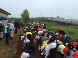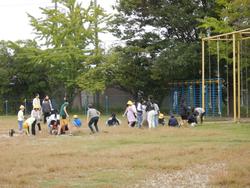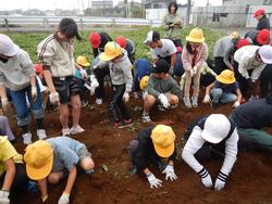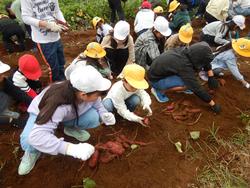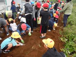 3校時は1年生と5年生が合同でサツマイモ掘りを行いました。
