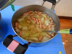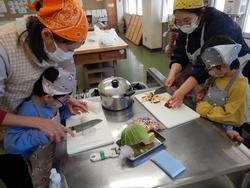 5組さんは畑で収穫した野菜でポトフを作りました。