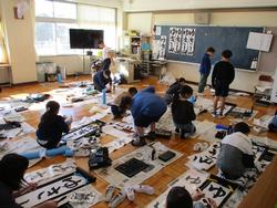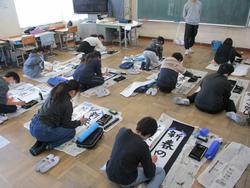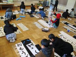 8日(木)校内書き初め大会は体育館工事のため各教室で行いました。