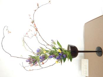 9/16ウンリュウヤナギ(雲竜柳)・リンドウ・ケイトウ・スターチス・アブライト