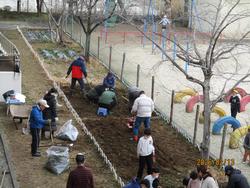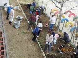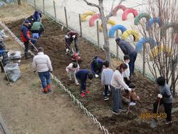 13日(金)地域の「こぶし会」の皆さんの協力で、ジャガイモ畑づくり開始です。