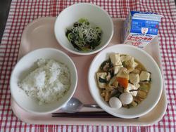 わかめごはん あげだしどうふ とりじる なし ぎゅうにゅう