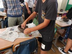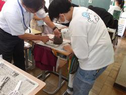 3・4校時に6年生は講師の方をお招きし、陶芸教室を行いました。完成が楽しみですね。世界で一つの作品です。