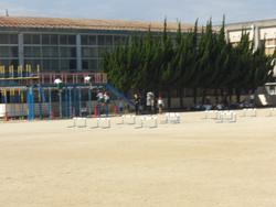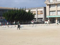 1時間目には、けやき学級、もくれん学級、4年生、1年生が校庭で体育を行っていました。1年生は体力テストで立ち幅跳びと50メートル走です。「走ったらお腹がすいたし、疲れちゃった。」とのことでした。給食まで頑張ろうね。