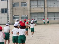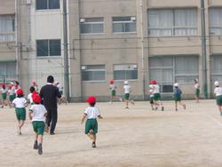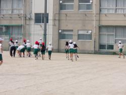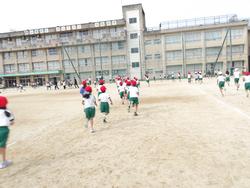 業間休みに、1、3、5年生が校庭で持久走練習を行いました。準備運動後、走り始めます。1年生はどうかと心配でしたが、一生懸命に走っており、一安心しました。「継続は力なり」です。