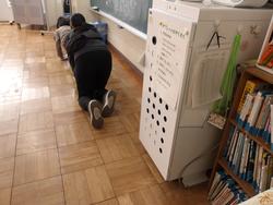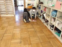 お昼休みになると、それまでお天気だったのが曇りに変わりました。それでも、校庭に出てきた子どもたちはおにごっこや遊具、ボール遊び等を楽しんでいました。清掃時には、また、お日様が出て来て、落ち葉拾いのグループは鉄棒付近で活動し、教室や廊下では、丁寧に拭く姿が見られました。きれいになった学校で、5時間目が始まります。