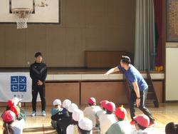 5年生は学級毎に、体育館と教室で「夢の教室」の学習を行いました。オリンピック出場経験者や現役サッカー選手をはじめ様々な種目で活躍するアスリート、そのOBやOGの方を「夢先生」としてお迎えしています。まずは、体育館で体を動かします。その後は、教室で夢先生の体験を話し、子ども達と夢について語り合いました。