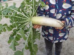 今日は4年生が育ててきた大根の収穫祭です。いつもお世話になっているスクールガードさんをお招きして、スタートしました。この学習でテーマでもある「助け合いと感謝の気持ち」は、4年生の一人一人が頑張ってきたからこそ、達成できました。今日から3日間の給食は、大根メニューとなります。とても楽しみです。