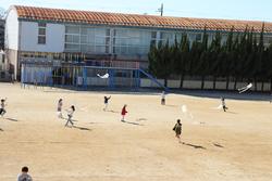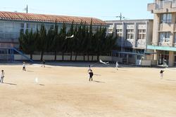 校庭では、1年生がたこあげに挑戦していました。凧があがると大喜び。上着も脱いでしまう程、熱中していた子ども達です。