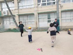 次々に校庭に出て来て、鬼ごっごやボール投げ、ドッジボール、縄跳び等で過ごしていました。