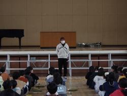 卒業式を前に、5年生が体育館をきれいにします。全員が集合して担当箇所の確認をすると、すぐに活動を開始していました。