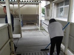 6年生が卒業式練習を終えると、5年生が雑巾やほうき等を手に体育館に入ってきました。
