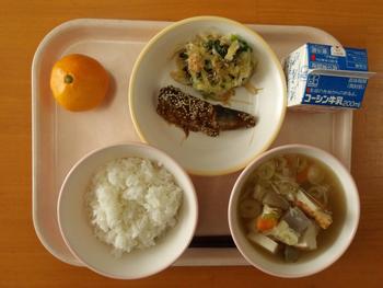 今日の給食は、「ごはん うわしのみそに うめおかかあえ けんちんじる きくかみかん ぎゅうにゅう」でした。