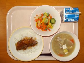 今日の給食は、「いわしのみそがらめどん はくさいのレモンあえ さつまじる ぎゅうにゅう」でした。