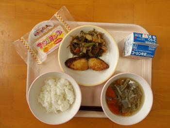 今日の給食は、「ごはん さわらのさいきょうやき きりぼしだいこんとこんぶのにもの けんちんじる みかんクレープ ぎゅうにゅう」でした。
