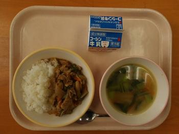 豚味噌丼は、豚肉や野菜類が入っていました。味噌味なので、ご飯もすすみ、さらに、にんにくや生姜が食欲を増します。ご飯を多くしている児童も多くの学級で見られました。1年生も、いただきますを楽しみにしていまおり、美味しそうに食べていました。