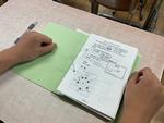 5校時は、各教室で林間学園のしおりのとじ込みが行われています。