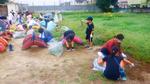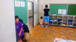 この日は二手に分かれました。1年生はペンキ塗りの講習を兼ねて、なかよし学級3組のペンキ塗りを行いました。2~6年生は除草作業でプール校庭側の雑草をとりました。途中、雨が降ってきてしまったので、この日の作業は早めに終了となりました。