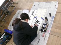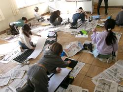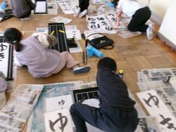 | 今日は書写専科の先生に書写のご指導をいただき、これから取り組む書き初めの練習を行いました。心を落ち着かせて集中して筆を運ぶことの体験は日本の文化を学ぶことにつながります。どの児童も真剣に取り組んでいました。ご指導ありがとうございました。「明るいあいさつ かがやく笑顔 みんな仲よく高木小」 | ||
