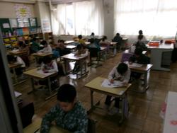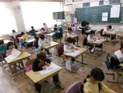| 今日は書写専科の先生に書写のご指導をいただき、これから取り組む書き初めの練習を行いました。心を落ち着かせて集中して筆を運ぶことの体験は日本の文化を学ぶことにつながります。どの児童も真剣に取り組んでいました。ご指導ありがとうございました。「明るいあいさつ かがやく笑顔 みんな仲よく高木小」 | ||