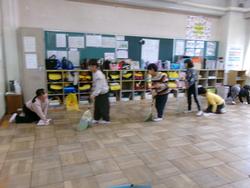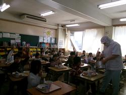 | 今日から今学期の給食が始まりました。栄養士さん、調理員さん、担当の皆様今学期も栄養たっぷりでおいしい給食をよろしくお願いします。「明るいあいさつ かがやく笑顔 みんな仲よく高木小」 | ||