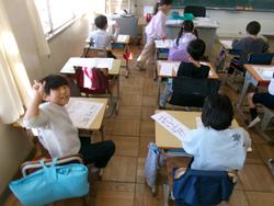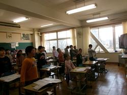 | 今日は1945年の長崎原爆で被災された方からご自身の体験を子どもたちに話していただきました。子どもたちは真剣なとても表情でお話を聞き、あらためて平和の大切さを考える機会となりました。本日はありがとうございました。「明るいあいさつ かがやく笑顔 みんな仲よく高木小」 | ||