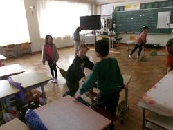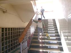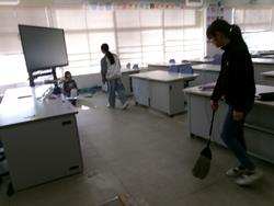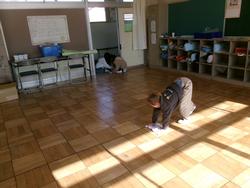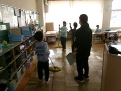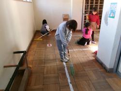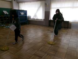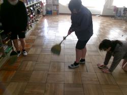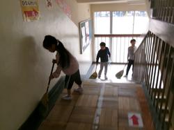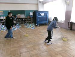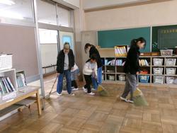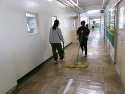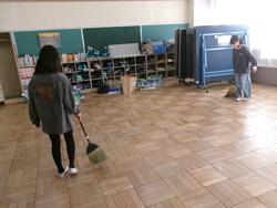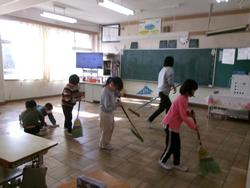 | たて割り掃除の様子 学年を超えてみんなで協力してすみずみまできれいにしました。お疲れ様でした。 | ||